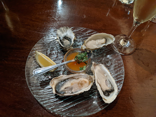 Tried this place for Dine About Town and even though Im not a seafood person I thought this placed served a high quality meal! This place is very small and cramped, so its better for a date but not too intimate because people are literally 2 feet away from you. It still maintains a classy but casual ambiance. Our server first brought out oysters. They were pretty small but I like oysters and they tasted pretty fresh. Next was Maine lobster broth, the shrimp was nice and tender and the soup had ok flavor. Not too fishy. For appetizers we tried crab salad, which was light and refreshing. I also had the yellowfin tuna tartare which was slightly more spicy and substantive but not too heavy either. I tried a bit of the seared scallops which were cooked very well. The truffle risotto was very rich and I liked the savory flavor, I just wished the rice was cooked slightly more. For dessert I had a semifreddo for the first time- I liked the light texture but otherwise it could have used more flavor. A solid meal that ended up balancing out with dishes that were light versus those that were heavy. They know how to present seafood beautifully and balance it well!