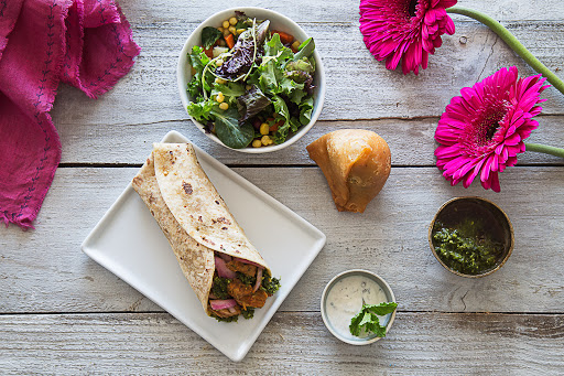 Ive purchased food from their food truck and when I drove by the restaurant one morning, I knew I would need to come back here for lunch that day. Their menu is interesting, they have a limited choice of items, which is not a bad thing. It may contribute that you actually get a large portion of food for a low price. They have two ways you can go, either order a roti wrap or a combo plate. Ive purchased the roti wrap from their truck and the combo meal seems really interesting because you can select two main courses from a list of about 9 items (I didnt really count, but there was a reasonable selection). On your combo plate you get lentils, roti, rice, salad, sauces, its a big plate of food. I dont like lentils so the server subbed out with another roti (she gave me a choice). How all this works is you start at one end (like those 2 item Chinese places) and pick your dishes. She starts stacking the plate and checking if you want all the sauces and salad. Then you pay at the end, you can order Chai tea when you pay. I got the chicken tikka masala and the Gobi Aloo. My daughter got the chiken tikka masala and kebab (made with ground turkey). I like spicy food, that kebab had one hell of a kick to it. Theres a steady stream of business here. The food is satisfying and quick. We were in and out of there in 20 mins. Parking isnt too horrible at lunch time.