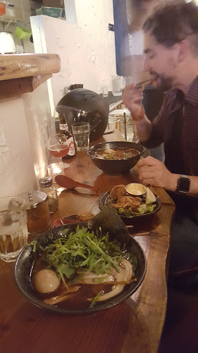 The high prices here are what pay for Barbis extravagant lifestyle. This isnt sushi where a pricing increase can be expected, almost all ingredients can be sourced here, so why the high prices. IDK. I had high hopes because I thought that since the owner lived in Japan and opened up a classic food restaurant with simply a modern design it would bring the high class glory this golden or milky broth deserves. I came here twice on two separate trips and had inconsistency in the noodles, overcooked, undercooked. The broth on my tonkatsu was warm, but the broth on my miso was scalding and nuked my egg. Shoyu was rich in flavor and saltier than about any other ramen Ive ever had. Whats strange is they are popular with vegetarians, but most vegetarians are also conscious of their sodium and unless you take salt tabs like me for cycling might find this incompatible with your diet, so be fair warned. Tip: Tonkatsu broth is served Wednesdays while all other are available every day. The quality of the noodles is undeniable, about as uniform in shape and texture as youll find back in Tokyo and although its finished in the broth it should still take on just a little flavor. If overcooked they fall apart of it the broth is too hot, the same. Undercooked they overstarch. The décor is cool, not too fancy or fusion. I do like the limited menu and trying to stay authentic, but what gets me is the fact that in some situations its double what I pay with conversion. Parking sucks because its in the Mission and the hours suck to sober up here, just dinnertime hours. Its not the usual hole in the wall, cheap, authentic, ethnic food youd hope for. Kirimachi, Hisago are better imo despite having somewhat expensive ramen as well.