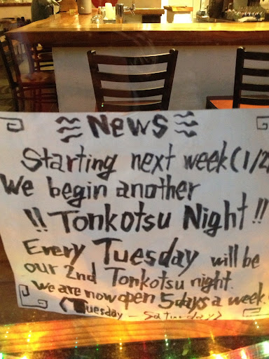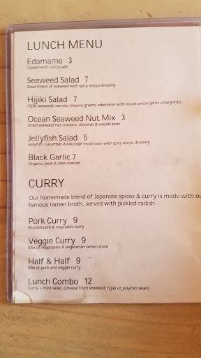 I probably guzzled a gallon of water after eating at this place. Everything was way too salty! Came here because I was charmed by the lanterns and the cozy looking decor but overall a big disappointment. I ordered the tonkatsu ramen (apparently only served on Tuesdays and Wednesdays) and knew it was not for me the moment I took my first bite. The noodles were stale, thin, and undercooked (no, not al dente, I really do mean undercooked). The chasu was ok but on the dry side. Oh and that egg! That soft boiled egg was supposed to be the redeeming part of the whole meal! Yes, it was cooked just the right amount of time so that the yolk was runny but man was it salty! It tasted like it took a month-long bath in soy sauce! The fried tofu appetizer was equally disappointing. It was bland. Wheres all the sauce and the the quivering katsuobushi sprinkled on top? The karage here was the only dish I enjoyed but was really nothing special. Conclusion: I will not be returning again.