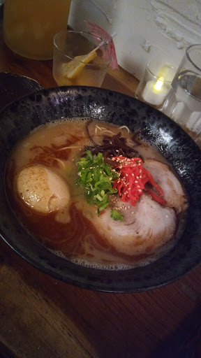 One of the greatest aesthetic in a restaurant atmosphere! Their food was a good 3.5 based on what my friend and I ordered. My friend has been raving about their egg covered in fried bacon so I decided we should go try it. We came in and honestly, I wouldve complained because it was hella dark, but it supplemented the decorations. We ordered the fried egg and fried chicken. Of course, we wanted to get home as soon as possible because it was a new episode of How To Get Away With Murder. We literally waited about 20 minutes which was ridiculous. Finally got our order and went home. The first thing I ate was the fried chicken. I thought it was gonna have bones in it but it didnt, thank God! It definitely tasted better when I squeezed a lemon in it and dipped it in the sauce it came with. Fried chicken was delicious! The fried egg that my friend was crazy about was okay... It wasnt what I was expecting. I was thinking an egg deep fried. Honestly, Id love to come back here and try their well-reviewed ramen. I was told it was mediocre but Id like to be the judge of that.