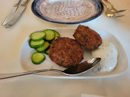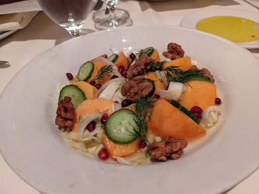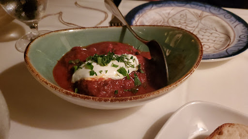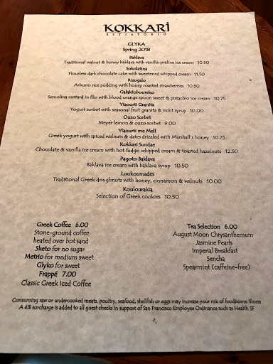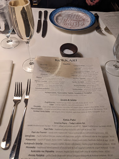 Zucchini Cakes - Fried really well to give them a really crunchy crust that contrasted with the soft interior. The stuffing was cheesy and gave the zucchini a richer flavor. Yogurt dressing was refreshing and helped round out the other rich and fatty flavors. Saghanaki - Delicious gooey pan fried cheese. It was salty and slightly sharp but generally pretty mild so it wont offend anyone. The crisp edges added more flavor and texture. Great on bread. Grilled Octopus - Grilled well, but I wasnt a fan of the texture. The way they prepared it made the octopus really soft. I think the natural springy texture of octopus is fun to eat so this didnt really do it for me. I guess softening up the octopus helps prevent the tough, rubbery texture when its overcooked, but without the springiness, I thought it was kinda boring. An easy solution to this is to just not overcook the octopus. Then they wont need to soften it. Grilled Lamb Riblets - The lamb riblets were grilled well and had a flavorful sear. The execution was on point as the meat was tender but not to the point where its meat mush. The meat held its structure but still slid off the bones easily. Goat Stew - The waiter described the stew being made with spices like nutmeg and allspice, but I didnt really taste much of that spice component. It still wasnt bad though. The goat was tender, and the cheese gave the stew more richness and aroma. The stew had enough basic seasonings like salt, but it wouldve been perfect if there were more of those warm spice flavors. Moussaka - Pretty good. I thought the stuffing of the moussaka had the warm cinnamon, nutmeg, and allspice flavors that were missing in the goat stew. The creamy bechamel helped layer out the flavors of the stuffing to make them more palatable and easier to enjoy. Grill Lamb Chops - Spectacular. The perfect sear gave them a smoky charred crust, and they had a beautiful warm red center. The simple seasoning brought out the best in the lamb, so it didnt need any fancy spices or anything. I was doubtful about the lamb chops at first, but now I see the light. Good job, Kokkari.
