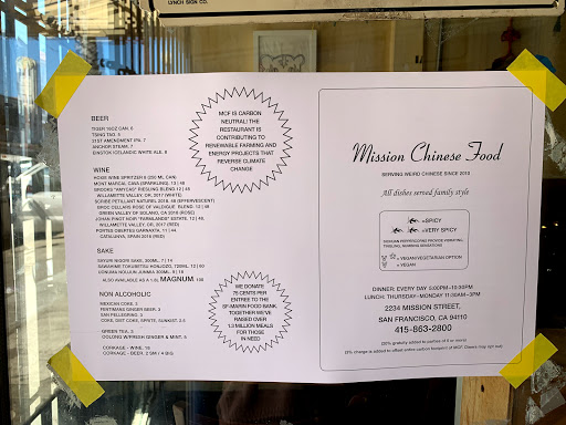 Mission Chinese was the second destination as my proper introduction to San Francisco food after La Taqueria, whose hype has inconceivably outgrown its brick walls and wooden benches. Mission Chinese is no different; theres a waitlisted crowd on the sidewalk almost every night. You like tables? Inside, they almost have tables on tables. My favorite part about Mission Chinese is the look. Theres no proper name on the outside, just the old signage in Chinese characters of what the previous restaurant used to be. The inside is plain, with classic Chinese wall decor - men on horseback prancing in a uniform line, faces painted flat and facing forward like cats detecting a thump. Hold on... dim the lights, play some throwback mid-2000s, add a strobe light, and hang a long dragon from the ceiling. Thats what the youth like. "Fried Rice with Cod" is my favorite, mostly because I love rice. Yes, they have standard dishes like "Beef with Broccoli" and some unique, like "Squid Ink Chow Mien." Its all decent/good. If it isnt sprinkle some of that MSG at your table. Its not salt. Its MSG. Try it.