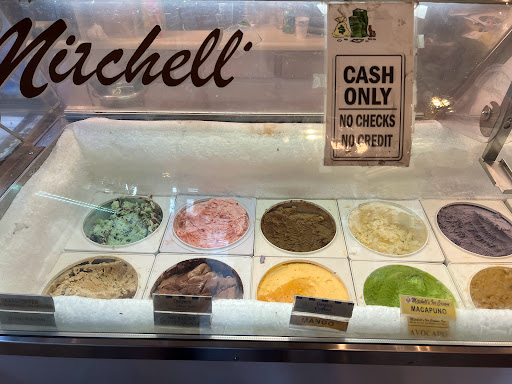 cash only! mitchells, dreyers and candy. a simple spot with a great variety of flavors. the owner is super friendly, quite possibly the sweetest guy ever. $4.50 for a double scoop in a waffle cone. ill be coming back.