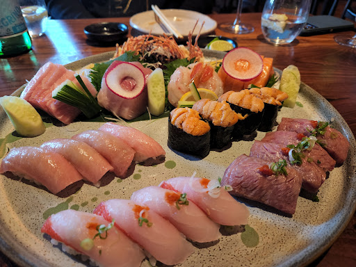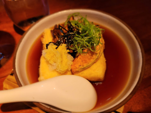 My colleagues and I dined here on a lucky whim, grabbing a table in the back just as they opened at 5:30pm. Our server was extremely knowledgeable and helpful, listening to your needs over selling the highest-priced option. We split the garlic edamame and gyu tataki to start and both were delicious. For dinner I had the futago (seared flatloin beef with sautéed garlic spinach and Japanese eggplant, topped with miso sesame sauce) and midori maki roll (asparagus, kaiware, cucumber and carrot roll topped with avocado and cherry tomato ), both of which hit the spot. It isnt cheap but its worth the experience for high-quality Japanese food in a beautiful setting.