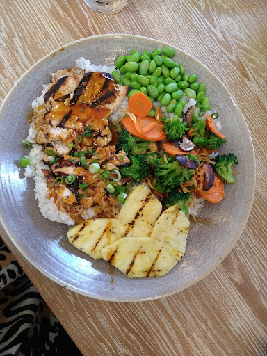 This is my favorite go-to dinner spot. Plusses: - Good variety of seafood from rice bowls (salmon teriyaki is my favorite) or tacos (baja is the best) which are more filling to salads that are truly healthy (ahi tuna is my go-to) - You can order online to avoid waiting when you get there - thats what I always do - Sweet. potato. fries. - They have a good customer service culture such that if your order is late, you can get comped. Minuses: - The actual venue is quite small, so you dont have a very good chance of getting a table there