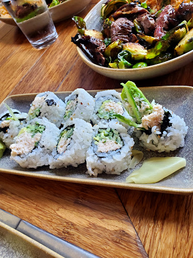 This place was pretty good. We kind of over did it because we were starving when we came in after walking all over Golden Gate Park. So after ordering two trays of sushi before our meal we were kind of stuffed. The sushi is really good and fresh. I ordered the Vietnamese steak sandwich with sweet potato fries. The sandwich was bomb but a little bit spicy so if you can eat spicy I would suggest you ask them to leave out the peppers. I also reached across the table to try some of my sons Korean sticky ribs and they were very good. It looks like they have a lot of good cocktails but I didnt drink since I had a long drive home.