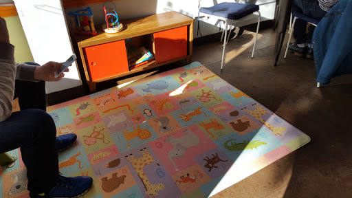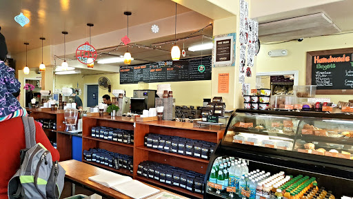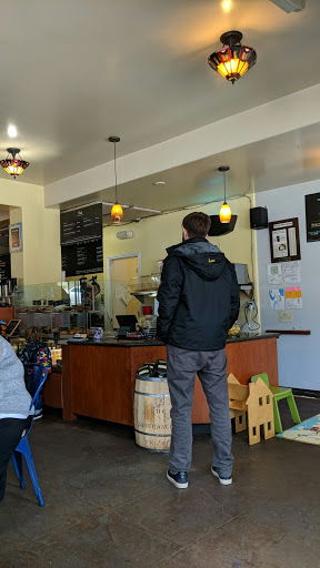 Super kid friendly! Has a mat area with books and toys next to entrance. Right across the street from playground. Good drinks and kind staff. Changing table in bathroom. Firemen like to visit this joint!