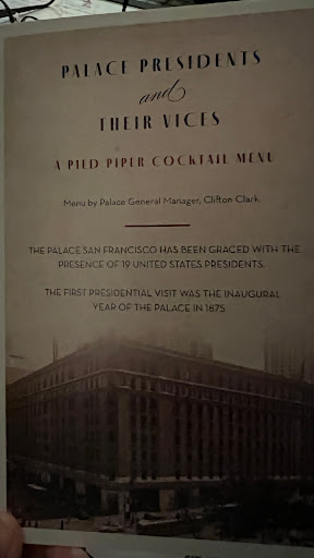 A local SF classic place(inside the Palace Hotel) for drinks and a small meal after work. Staff is very friendly.