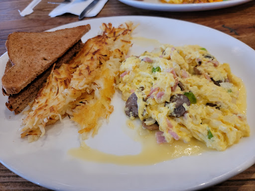 Im very confused by the line that exists every morning for this place. It took about 40 minutes to get a table. The staff wasnt exactly rude, but they are so busy they dont have time to be polite or do anything more than take your order and drop it off. Food is mediocre and nothing to brag about. We didnt have some horrible experience; however, there is not a single reason I would ever consider returning. My advice... skip the line and go somewhere else. Jack-in-the-box, across the street, would probably be a more satisfying option.