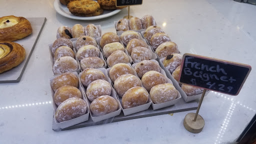 The staff is friendly. It feels a bit "fast food restaurant". Its cheap and the food was good. We had the pastry crust pizza eggs florentine. Its not like Quiche. Its like pizza but the dough is a thin puff pastry. It was delicious. We also tried the fresh roasted turkey sandwich which was not that good. Its a cold sandwich made with toast. But we thought its made with a baguette. If you want the baguette thing (which is the big picture on their website) you probably have to order a Tartine (French Melt).