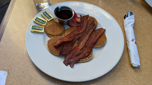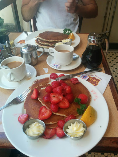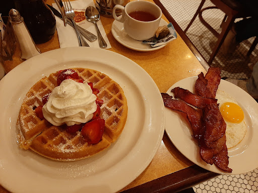 Great service, good food! Very family friendly! I was alone with a baby in stroller and it was raining outside. The hostess quickly went out to help open the door for me and put me in an area where i can have the stroller right beside me. They made me feel welcome and totally didnt mind the wet stroller and umbrellas i brought in. The service was great.. the waiter was very fast in providing me with water and a straw! He was so helpful when i was ordering as well. I wanted the world famous pancakes and the chowder but could not decide on the size to order and he told me i could order the smaller ones and if i felt it wasnt enough, he could upgrade it to the bigger size. Totally makes your life easy! (The pancakes actually comes in half size in case you are alone and afraid to get the whole order.) The food was good. Nothing extraordinary but well worth the price. The pancakes were tasty and the chowder was with hint of spice. At the end of the meal, they give you a token to play thier slot machine, i actually won a free smoothie! So you know its real and it works! Based on their menu, this place looks perfect for breakfast, also good for lunch and dinner. Brealfast is also till 3pm! :)