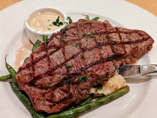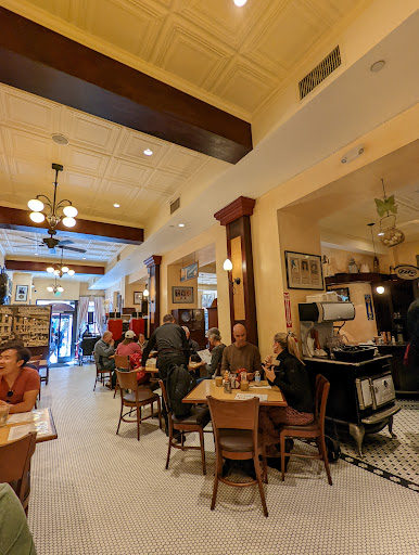 Sears Fine Foods is a not a stones throw away from Union Square, located on Powell Street. It has a rather unassuming exterior, however the interior is quite charming with a warm atmosphere. I visited Sears when just looking for a bite to eat around my area, the location is fantastic. Eddie was my waiter and he was friendly and warm and attentive. I got to sit right near the window to watch the cable cars trundle by, which was a great experience for this tourist. I had the Calamari for starters, it was good if a little tough. Theres also some octopus as well as calamari rings. Its quite large for a starter though. The main was the boneless rib eye special. It was good value with how large the steak was. Very well cooked, and the toppings and sides were very nice, in particular the green beans. For dessert, the mango sorbet was to die for, it was so refreshing after all that meat, and for $6.95, you cant go wrong. Overall I enjoyed my time at Sears, it had a great atmosphere, good food and friendly staff. Id definitely go back.