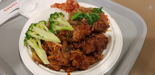 Not my favorite place to eat at the food court. The chicken and pork are okay. I like the japchae, but overall the food tends to be too greasy for my taste. They give you a lot though and the prices are okay.