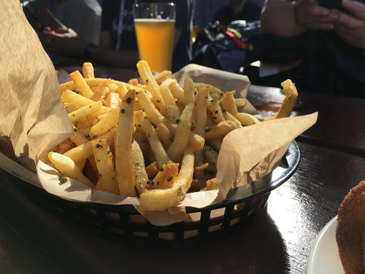 Please be aware: if you want to come into this bar you must have a passport if youre not from the USA. Regardless of age, they will ID you and a driving license will not suffice. Even if you do not intend to drink you must prove youre over 21 in order to be anywhere in the brewery. That being said... Once youre in its a gorgeous, spacious bar thats good for groups as even if theyre full, you wont feel as if its overly crowded. They have a lovely patio with enough shade to be comfortable. The cocktails are strong and tasty and while the menu is quite small, the quality is there which is appreciated. I tried the fries and they were delicious. The spicy mayo that comes with it is especially good.