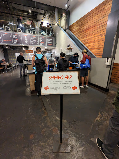 Standard is what comes to mind. Not sure why this place is so popular. The burger is pretty average, nothing special. The pickles that they have are sweeter (not dill pickles) which Im personally not a fan of but if thats your thing youll probably love them! I did pick up an organic orange juice which was absolutely delicious. You need a code to get into the bathroom in the back which the staff will happily punch in for you to let you in. All in all, this is a safe pick to eat at but nothing thatll blow you away.