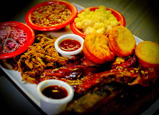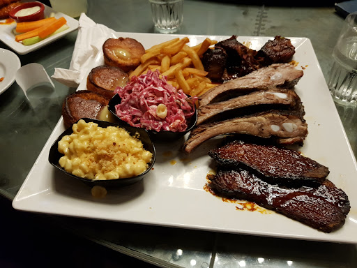 My history: I have been to Salt Lick and County Line in Austin, TX ( Best BBQ). The Brisket here is pretty good, nice and not chewy, great texture. The Potato salad has good taste, but a bit too wet IMHO. The Pulled pork sliders, are really good, good buns too. The Corn bread, yummy! Now to the Tater Tots... OMG!!! On point, and thats a true story! The bad and sad side to my review is the ribs. Dry, dry, dry. Not enough sauce to help these bad boys. Seemed like they were re-heated in an oven with zero moisture. All-in-all, still a good place for BBQ. I prefer this place to Daves. And they have Guinness and Stella on tap!