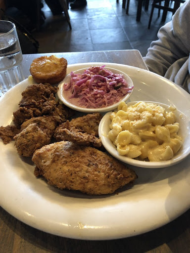 Very good bbq in San Francisco with amaziuviews from the restaurant ! Great sauces and cornbread. The brisket was super tender and very good flavor! Pulled pork was great and would be solid on a sandwich. Also had the ribs and Mac n cheese and we will definitely come back! Great bartender with good drinks.