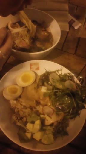I had a Wagyu Burger - yummy and compact, on a sweet bun. She had a ramen that was far too large for her to finish, and we both came away happy. Not blown away, but good. They also had lots of choices of different kinds of foods & drinks. Not just ramen.