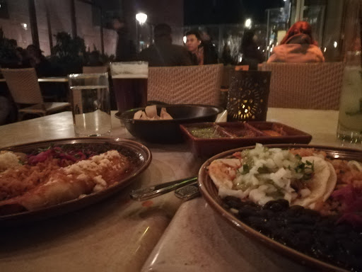Venir a Tropisueño fue por pura casualidad, ya que nos pillaba al lado del hotel donde nos alojábamos y nos apetecía algo tipo mexicano. Así que les pregunté por sus platos y me recomendaron las enchiladas, y eso me pedí. Unas de pollo y otras de ternera, muy ricas, acompañadas de arroz y frijoles negros. Mientras nos servían la comida pusieron una cesta de nachos que te podías tomar si ibas a la barra a por salsas. Yo elegí guacamole. Para beber, en la otra barra hay un coctelero preparando mayormente margaritas, pero yo me tomé una michelada que estaba bien, pero que no era ninguna delicia. Las probé mejores.