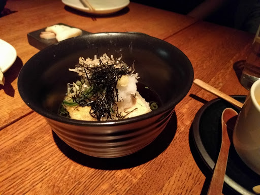 Small, minimalist Japanese "izakaya" in the Mission. I put the "izakaya" in quotes because its nothing like a normal izakaya (no grungy, underground feel; no large menu of grilled meats; no fun environment where its socially acceptable to do sake bombs). Its more like a toned-down, mature Japanese restaurant that serves a few izakaya-like items at quite-expensive price points. But damn are those items delicious. The food is excellent here, no doubt -- the grilled squid, the uni-slathered yaki onigiri, the white shrimp tempura with matcha salt, the tender wagyu beef tataki, the uni steamed egg; everything was good. Im a bit mixed on Izakaya Yuzuki, because even though everything was delicious, it falls a bit short with its compact menu and high prices.