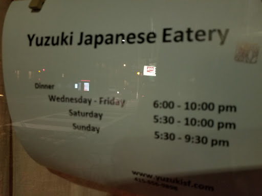 Finally found an izakaya worth revisiting in SF! That said, Kiraku over in Berkeley still reigns king of this list, but at least theres a more local option if Im ever too lazy to trek across the bridge. I came with Anna D several weeks back and ordered: * Beniotome Sesame - A glass of sesame-based shochu, recommended by our waiter. Of the few shochus Ive tried (regular, barley, sweet potato), this was among my favorites, with a very noticeable and pleasant sesame aftertaste. * Buta Kakuni - Having had a similar dish at other izakayas, Im always reminded of soy braised pork belly that you can find at Chinese restaurants. The Japanese version is always a little stronger though, and great with the Japanese mustard. Yuzukis easily trumps Kirakus. * Chawan-mushi with Uni - While not the best chawanmushi Ive had, this was a pretty solid preparation of it, with a generous serving of uni to go with it. * Kobe Beef Tataki - One of my favorite plates, with super tender meat and great flavor. If only it came with more than a few slices of wagyu! * Yaki Omusubi - This vies with the beef tataki for the best dishes of the night, and, actually, easily surpasses it. Fantastic flavor, with great variation in texture between the grilled and normal rice, with a great mouth feel. * Yaki Surume Ika - Squid, prepared in two different ways: the body was grilled, but the tentacles were fried, if I recall correctly. Im generally not a fan of grilled squid, finding it too rubbery and lacking in flavor, but Yuzuki did the exact opposite, present a tender and flavorful dish. (I still stuck mostly to the tentacles though) ***Accessibility Info*** Venue - A decently sized place with plenty of accessible seating. Bathroom - Didnt try them.