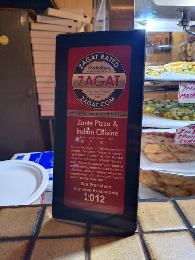 Because my son had a positive experience with Zante a year or so ago, we decided to try their delivery service while visiting San Francisco since we love Indian food. Alas, we were sorely disappointed. The toppings were very unevenly spread on the pizza, and there was not the hint of tandoori flavoring or other Indian spices. In fact, there was nothing about the pizza to distinguish it as being Indian cuisine. The worst Pizza Hut pizza I have ever had was better than this one from Zante.