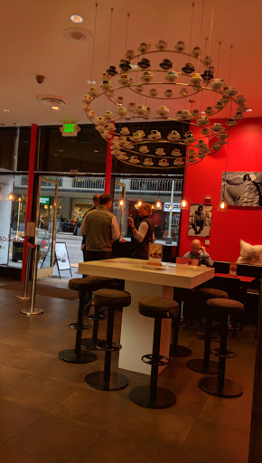 One of the best aces for coffee I downtown if not SF. Although it is a bit pricey, every drink I have had here is well made and delicately balanced in terms of flavor. The hot chocolate I had was not too sweet and had a good mix of flavor, not too milky. Same with the vanilla latte. It had the perfect hint of flavor that was not overpowering. I took one star away because I have noticed flies buzzing around the food display which is actually food being served to customers.
