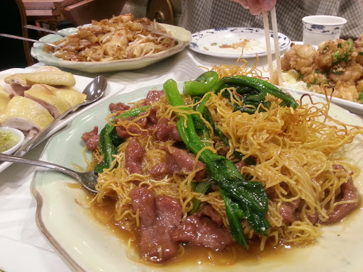 Huuuge menu, had no idea what to order so I just took the waiters reccomendation. Got the soy sauce cooked lo mein, shrimp and veggies, and mixed seafood on fried chow mein. Each was pretty good and a very large serving our group of 3 could barely finish. Came out to a very friendly price, will come back again for some other stuff. Also if you have a friend who speaks cantonese please bring them theyll be a lifesaver.