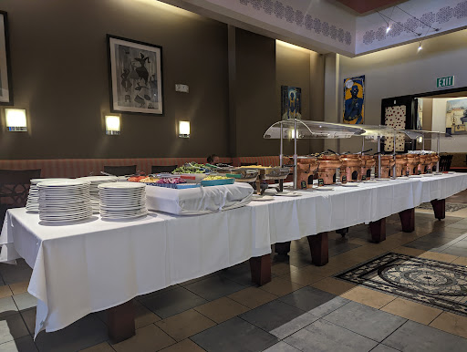 Had the lunch buffet here with family on the weekend and found Amber India pleasantly lovely inside. After all, it is Santana Row! The lunch buffet included butter chicken, salads, daal, eggplant, naan, fish and tandoori chicken. The buffet wasnt limited to just this, but these items were the only stand out items I can remember. There is also a dessert table with fresh fruit, kheer and jelebis. The food is pretty average in terms of flavor, though I feel like Ive had better Indian food elsewhere. From the entrees to dessert, nothing was truly outstanding here and definitely costing more than it deserves. Though the restaurant is lovely with a good waitstaff, Amber India doesnt provide memorable Indian food to say the least- its just average. Its location on The Row is convenient if youre looking for a place to eat that different from the typical American styled restaurants along The Row.
