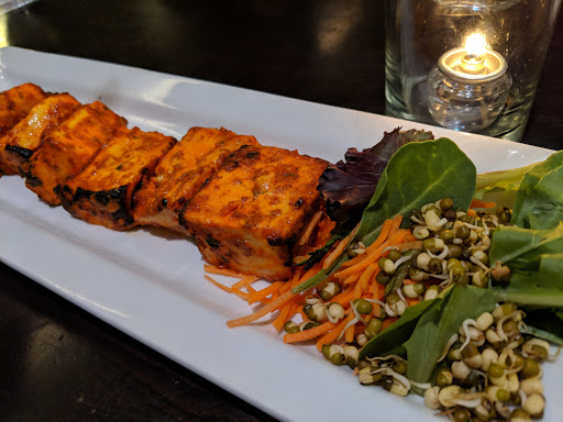 It was a business dinner and we were a large group of people. Some of the people in the group were Indian, others multinational. Amber offered a good place to sample Indian food that was tailored for a global audience. The restaurant is located in upscale Santana Row neighborhood of San Jose. The ambiance of Amber is one of opulence. It is a good place to have dinner, sights and sounds wise and a really solid Indian restaurant showcase in the Valley. We were famished and decided to start off with appetizers. For the vegetarians, we ordered Tandoori Cauliflower and Panchpooran Paneer Tikka. Most of us had mango lassi. The appetizers arrived after a while. They both tasted great but the Tandoori cauliflower was a bad idea. It was nothing but mildly spiced cauliflower florets taken from the tandoori over. We had barely a handful of florets and the dish price was all of $15.95. To call that overpriced would be a glorious understatement. The paneer tikka portion size was also measly for the price. But at least there was some effort that went into making the paneer tikka and it tasted good. For the main course, we ordered multiple assorted bread baskets to go with the entrees. We ordered two vegetarian curries – Subz Malabar and Khubani Kofta. I didnt want to eat much of the curry and decided to go with a Mizuna and Black Figs salad with goat cheese. The salad was great. I loved it. I sampled the Subz Malabar and the Khubani Kofta, both of which were pretty good. I would not call them outstanding but they were definitely tasty. I would have liked more koftas in the Khubani Kofta. The overall party felt good about the dinner and in that aspect, Amber had done what it promised. It offered a high class Indian dining experience (with a suitably pricey bill to boot). With my 3 years in Bay Area, I could have picked a place that was much cheaper and offered much better Indian fare but Amber offered an ambiance that suited the needs of the group. For that, it is a South Bay standout.