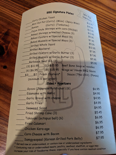 Awesome food and service with reasonable price. I love their one dollar oyster. It tastes fresh! The grilled seafood and skewers are also good. I even got a free depth bomb for my birthday!