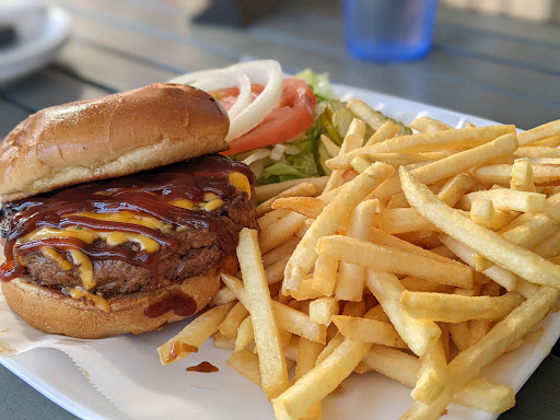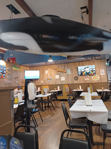 The restaurant is clean and has an open feel to it. Once you first walk in, youll notice a life size great white robotic shark hanging from the ceiling. Then you are greeted and treated like family. The food is cooked fresh and has plenty of flavor. The portions are plenty. They also feature the local sports teams in HD with plenty of viewable angles for their tvs mounted around the restaurant. I strongly suggest Blue Water, especially for either a pre or post Sharks game visit.