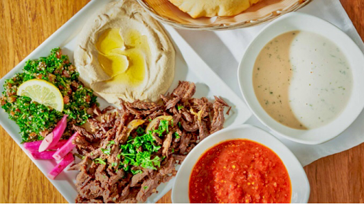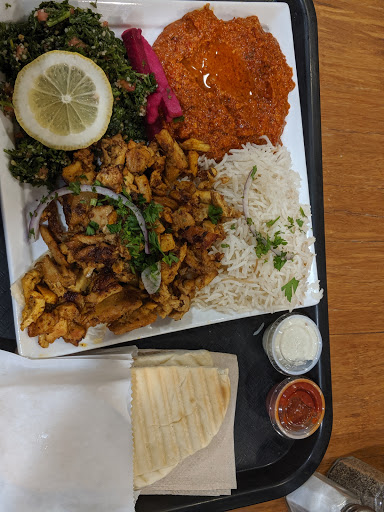 Try their shawarma plate and muhammara (red pepper dipping sauce like hummus)