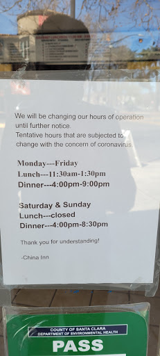 China Inn on the Alameda in San Jose. Its a small, family run chinese restaurant that offers good tasting chinese food, for take out or sit it. The restaurant isnt big at all (not your typical Chinese restaurant, but has about 7 or 8 tables (incl 2 or 3 that are outside). Service is quick and price is reasonable. Good place to go for chinese take out!