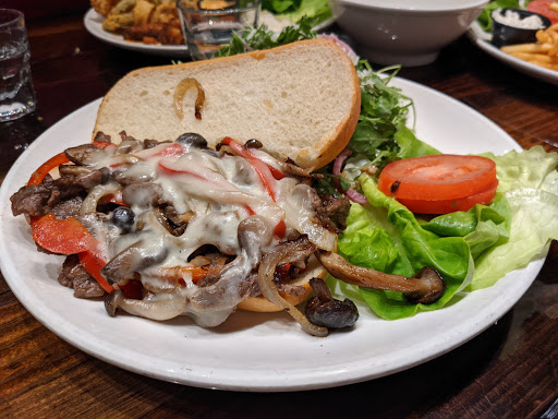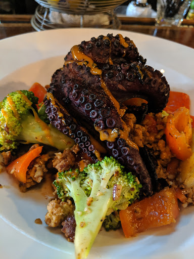 Appetizer: Fried Calamari (seasonal special) Entree: Firehouse Burger, medium rare Side: Arugula Salad tl;dr: Satisfying, high-quality food; a little pricey but I got what I paid for The fried calamari was chewy - as expected for calamari - but still tender enough to be manageable. The breading had a good crisp, with a light pepper seasoning that worked well to offset the oil, but it also had a tendency to fall off the squid bits. This was served with a very complex spicy Mayo dip, with a subtle, almost fruity undertone to it. The arugula salad was very unexpected, in how far it got with so little accompaniment. Other than a slight sweetnsour edge from the dressing, the arugula is all you can taste here. But I wasnt left chewing disconsolately, like I often am with underseasoned greens; they were savory and, again, slightly peppery, in a way that almost buries the expected bitterness. An enjoyable eye-opener. The Firehouse Burger has the beef as its centerpiece, and for good reason - its high-quality, rich, savory deliciousness. The usual burger veggies (tomato, lettuce, &c) were served on the side, almost embarrassed to accompany the burger lest they detract attention from the main event. They do cut the beefs richness when used, though its debatable whether thats a good thing! ;) This was our third choice in the area after other restaurants didnt pan out, but even though we didnt have a reservation they were able to find us a table for two.