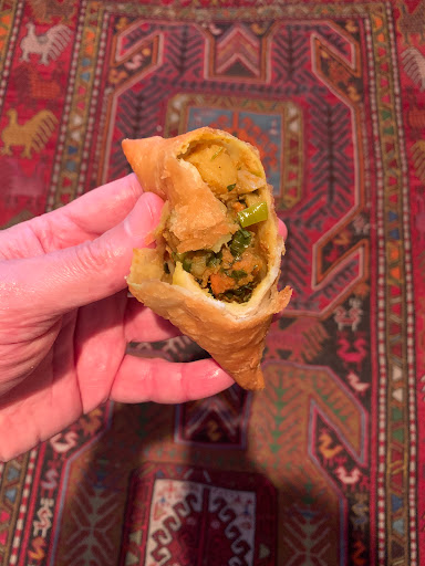 Food: 5 Decor: 3 Service: 4 Came here for a late lunch Saturday around 3pm. Parking is street only, and I had to loop around before I was able to find a spot. 1. Chicken sandwich, 7 ~Delicious. Essentially a shredded chicken banh mi. 2. Chicken samosa, 3 ~Very good. Hot out the oven, and the spicy dipping sauce complemented it perfectly.