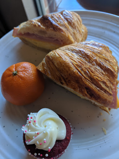 Coffee isnt great, this is certainly no artisan shop (in an area filled with them), but it looks nice and will do the job if you order sugary stuff. Decor is a little too "house wife" tacky for my tastes. Bad, overused fonts of all sorts of varieties everywhere - but thats my inner graphic designer talking. Their food is pretty decent, though expensive considering a lot of it is clearly ingredients/bread/etc sourced from the grocery store. The sweets are hit and miss. Croissants arent the real deal, closer to the "crescent" roll stuff you get a Starbucks. I enjoyed some of the danishes when I tried them. The biggest thing going for this place is the lack of competition in the area for a simple cafe that serves food, and I like the size. They also have good service, plus if you order a sandwich you do get a small treat plus a salad, so its not a terrible value.