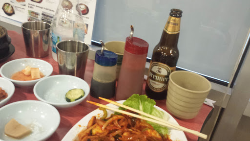 Polite service with a solid Korean menu to choose from, I had their spicey calamari which had a nice texture and the multiple side dishes including kimchi and fish loaf were a welcome balance to the palate from the spicey!! : )