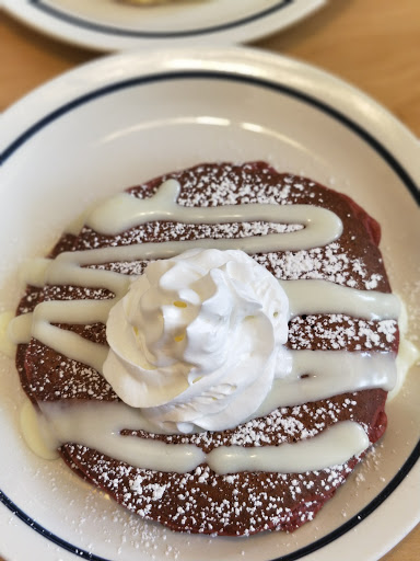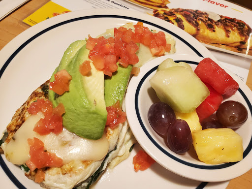 Service was great. Our waiter was super attentive and extremely nice throughout our entire meal. The food also came out nice and quick and he didnt rush us even though they were jammed packed. Food was decent. I dont remember the last time I ate at an IHOP but the menu was reminiscent of a Dennys in the sense that they had tons of dessert like breakfast meals. I was shocked how expensive the food was for how little food you get. I got the split decision and for 11 bucks it didnt fill me up. We walked out paying $55 for three people which makes it a hard sell when you can go to a little fancier place for just a little bit more money.