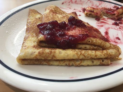 Hi. I enjoyed breakfast here. I had country potatoes and pancakes. I would have enjoyed vegetarian crepes as well. Restaurants need more vegetarian food and more to choose from in my opinion. Good atmosphere and friendly service.