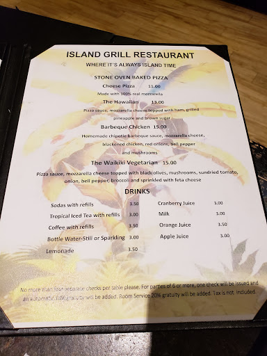 When I found this place searching for nearby restaurants to my hotel it looked like this could be a great diamond in the rough place to check out. However, Island Grill ended up being neither diamond or rough and fell in between the two. It starts with the atmosphere when you first walk in. Its dark and unwelcoming and felt a little uncomfortable when I arrived. The staff was very nice but after noticing the decor of the dining room with plastic table covers, etc. we asked to eat in the adjoining Bamboo Room which offered the full restaurant menu. This area was equally as dark but at least it had some nice TVs to watch the local NBA game. After sitting, we got menus and ordered a couple beers. Their beer selection isnt bad and includes some local favorites like Fat Tire. As for food, I ordered the Chicken Sandwich (cant remember the exact name) and my co-worker ordered the steak sandwich. Both were actually not bad but the bread was twice the size of the chicken and steak so we were left eating a lot of unnecessary bread. Additionally, the french fries were soggy and tasted like they just baked some frozen french fries Id buy at the store. Not only that, but the sandwiches were $17 a piece. Ive had much better food for a lot less cost. And the entire menu was like that with the average entree coming in around $35. Again, the bright points were the friendly and helpful staff but the atmosphere was just depressing and for what you are paying to eat there you should be getting a much better ambiance, decor, and food quality. Bottom line...if you see this place...just keep driving. They over charge and under produce.