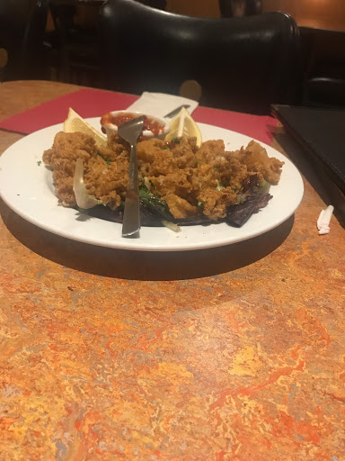 In a hotel area near airport. Pasta wirh prawns alfredo in very large portion. Good but cost $25.00 did not have our first two wine choices off their list. Service attentive and gracious.