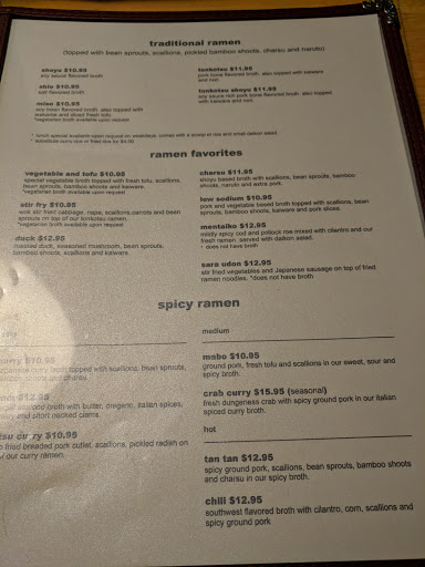 Not your ordinary ramen shop. Great tasting unique flavors, in addition to the staples make this my favorite place for ramen. The crab ramen is unique and delicious, although if youre afraid of a little spice or getting your hands messy opt instead for the clam ramen. The homemade gyoza are an excellent way to start the meal.