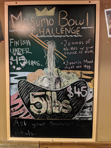 There is a food challenge here, advertised as 5lbs of meat, noodles and veggies that you have to finish in 45 minutes. However, after weighing the take home leftovers, it came out to over 8lbs. The ramen was average but the atmosphere was really fun. The wait staff participates in the fun. There is no way anyone on this earth could complete this food challenge.