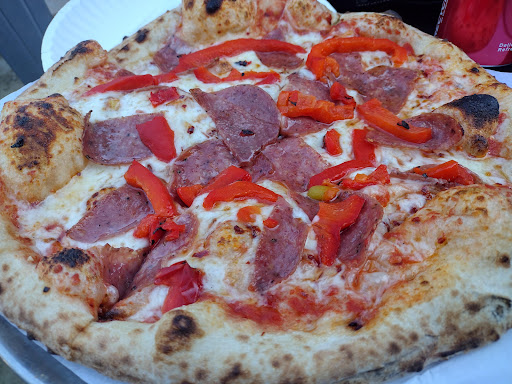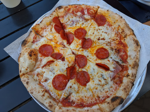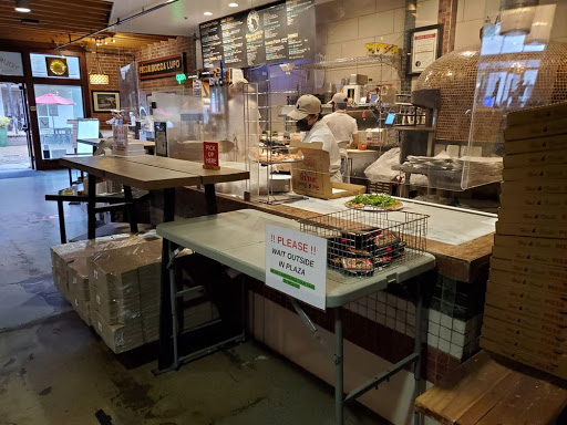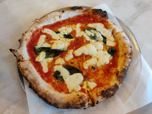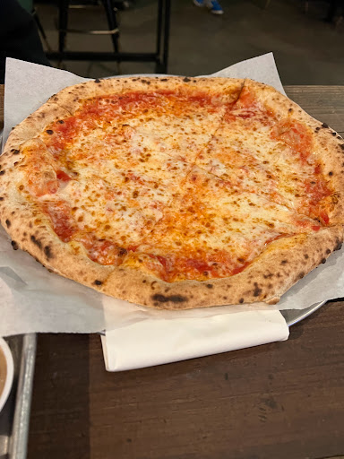 For wood fired pizza this place was below average. The baking results were strange. Some parts of the crust were charred well but the cheeses was not completely melted. Some cheese was still cool and the crust in the middle was still raw and doughy. Very strange. The flavor was ok but the texture of the crust edges was the strangest Ive had. Not chewy or crunchy just kinda strange. The place was very unkept and seating was awkward in the market. Not well laid out at all. End result was disappointing for a 4+ rating.