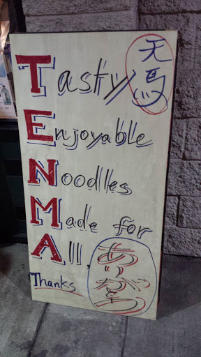 We originally wanted to go to the Taiwanese place next door but it was closed due to some pipe leak. Since this had 4 stars on Yelp, we decided to give it a try. Too bad it didnt live up to my expectations for a 4 star restaurant. We arrived around 6pm and had to wait for 10-15 min to get seated. Its a pretty small restaurant with very few tables. Theres also only 1 server and maybe only 1 chef as well so theyre quite slow compared to other places. We got #1 Tienma ramen and #2 soba for $9 each. Both were quite plain in terms of ingredients. My Tienma ramen only had 1 piece of meat (most ramen place have 2 pieces), 1 piece of seaweed, corn, bean sprouts, and noodles. The broth was on the salty/heavy side so I couldnt drink it after finishing my noodles. I like Myzen, Kahoo, and Santakou much better. It seems more like a place for families with kids, because there were trivia you could answer to get 2 pieces of seaweed.