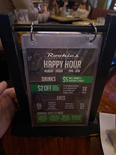 I hang out here like once a month with my girlfriends. Love Rookies. All the games on and great service and full bar. I do with they would add MORE hooks to their tables so we can all hang up our purses. And, I wish the menu wasnt so GUY FOOD centric. When they first opened, they had the brie en croute with honey and almonds, but they got rid of that. Their salads are great, but some more girl food and less "fried egg" on top kind of fare would be awesome for my girlfriends and me.
