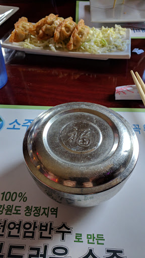Ive always enjoyed Korean food because of the many complimentary side dishes. The food here is pretty good, very friendly people. Looks like it is owned by two brothers and their parents, all of who works there. The stonepot rice entree is really good, and I especially like to clear noodles w/ vegetables. After your meal, you get to choose between green tea icecream or strawberry. I brought my little nephew along, and he was able to doodle on the place mat, which they later attached to the front window. Fun place to eat.