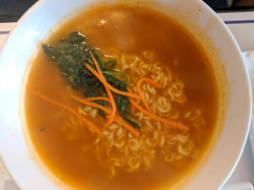 We ordered bibimbap, ramen, kimchi fried rice, and a seafood pancake. The seafood pancake was GREAT, but the other stuff was just OK. Ive only eaten at about 5 other Korean restaurants and mostly the "Korean bbq" style, which is different, so Im not well-versed in Korean food. For me, the ramen broth needed more spice, and both the ramen and bibimbap were served searing/boiling hot. It would have been more enjoyable if a bit cooler and spicier. However, I had a good time, and for $40 for all that, were happy. I give it three stars, but only because 3.5 stars is not available.
